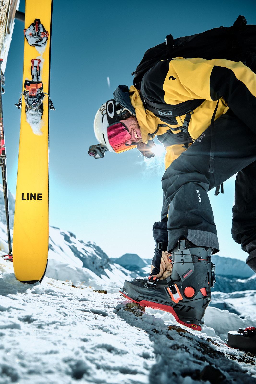 Sessione di scialpinismo a Crevacol con Dynafit Hoji Free e Vision Line Skis. Brand photography firmata da Isabella Sigaudo, fotografa outdoor in Piemonte.